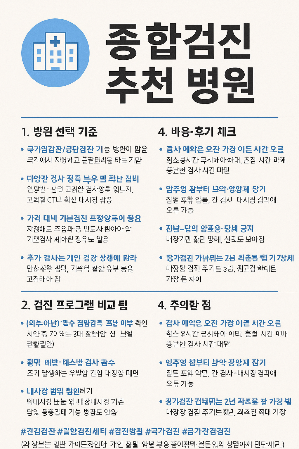🩺 1. 종합검진 병원 선택 시 체크리스트